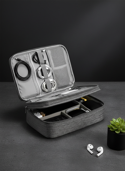 "As a freelancer on the go, this pouch holds all my essentials—cables, drive sticks, and adapters—without taking up bag space."
