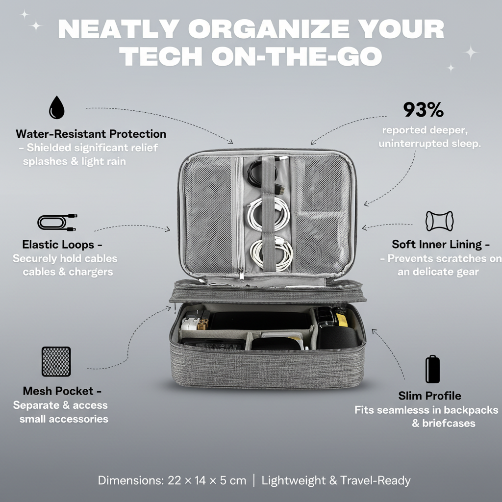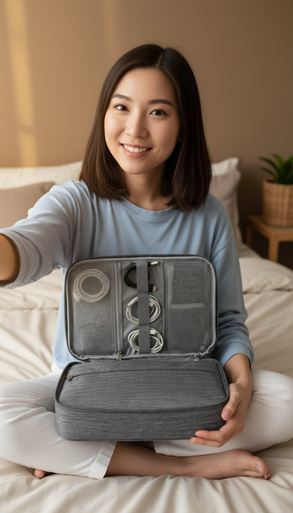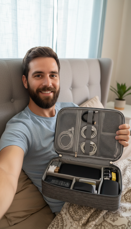 "This pouch transformed how I pack my chargers and cables. It’s lightweight yet roomy—perfect for every trip."